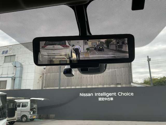 インテリジェントルームミラーです。人や物で視界が遮られてても、車体後部のカメラ映像に切り替えることにより、クリアな後方視界を実現しています。