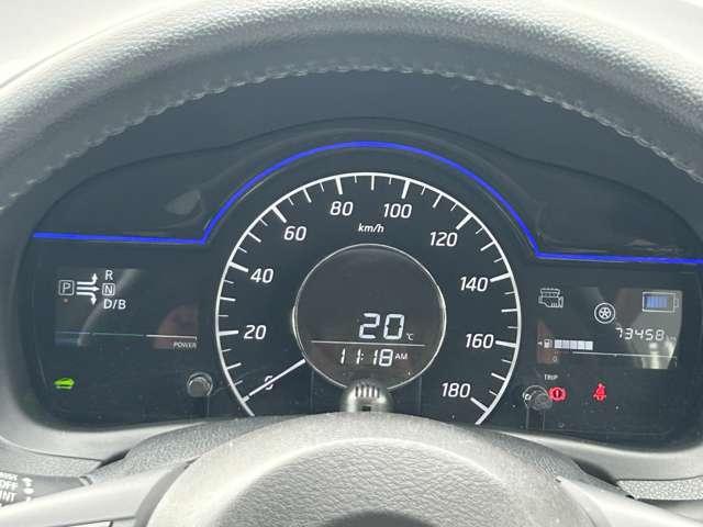 表示が見やすいアナログメータで中央には燃費や距離を表示するモニターがあります。