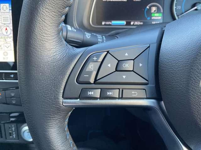 走行中でもハンドルから手を離すことなくオーディオの操作ができるステアリングスイッチ付き。