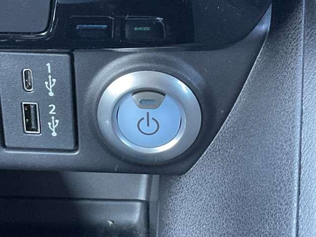 インテリジェントキーのパワースイッチです。走行システムはブレーキペダルを踏みながらこのスイッチを押すだけで起動できます。また起動音も変更できます。