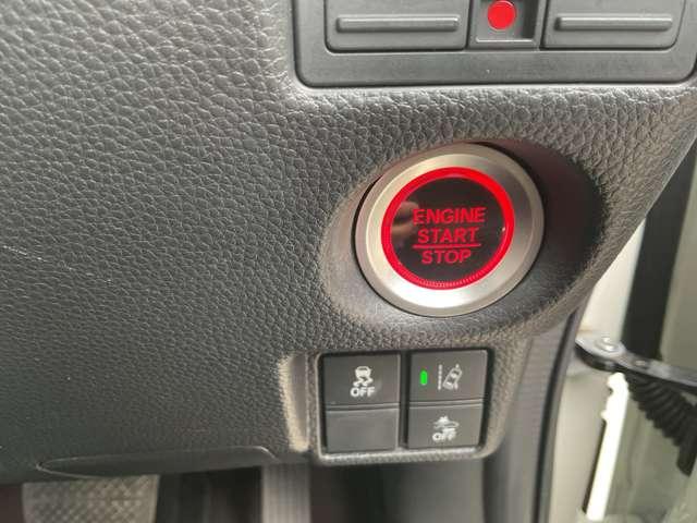 インテリジェントキーのプッシュスタートスイッチです。エンジンの始動はブレーキペダルを踏みながらこのスイッチを押すだけで始動できます