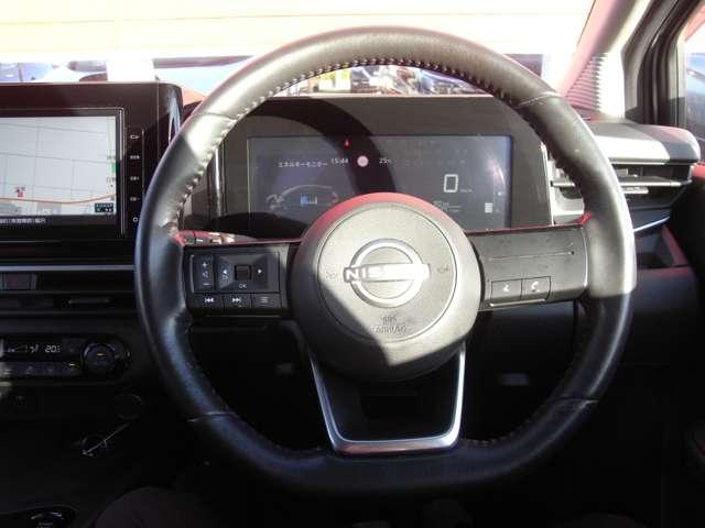 ステアリングスイッチ付で、指先だけの操作でオーディオなど各種操作が可能です。ステアリングは本革巻でアリングヒーターも装備!ハンズフリーフォンのスイッチはハンドル右側にあります。