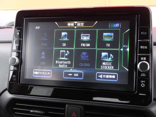 ナビゲーション+AV 2画面表示(デュアルウィンドウ)、TV、FM/AM、Bluetooth Audio、SDカード、DVD再生、 CD録音/再生、ハンズフリーフォン、スマホ、NissanConnec