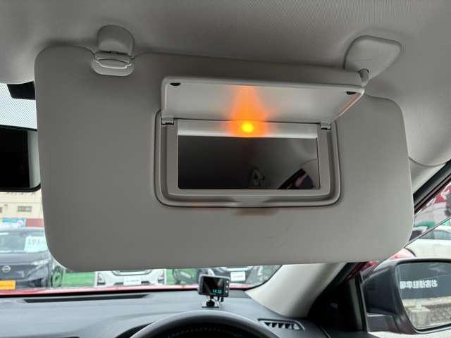 眩しい日差しを遮ってくれるサンバイザー!バニティミラーが付いているので、気になる身だしなみのチェックもOK(#^.^#)照明付なので夜間でも使えてウレシイですね♪