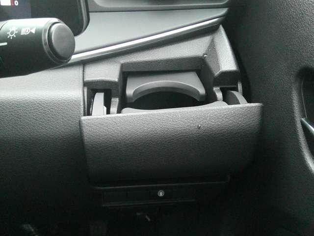 乗車中にホッと一息、ドリンクホルダーもありますよ!格納可能でスタイリッシュなデザインとなっておりますよ♪