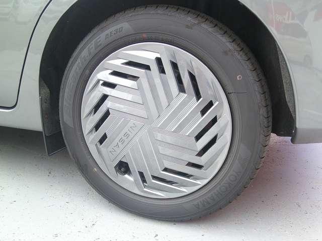 近未来なデザインの純正ホイールキャップが装着されていますよ♪