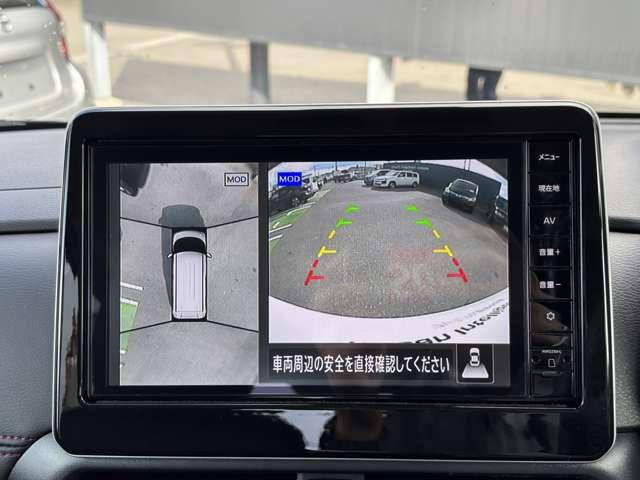 車を空から見たような映像が映る、アラウンドビューモニターで車両周辺の安全確認も一目でできます!小さなお子様や障害物も確認できるので、運転のし易さだけではなく事故防止にも役立ちます♪
