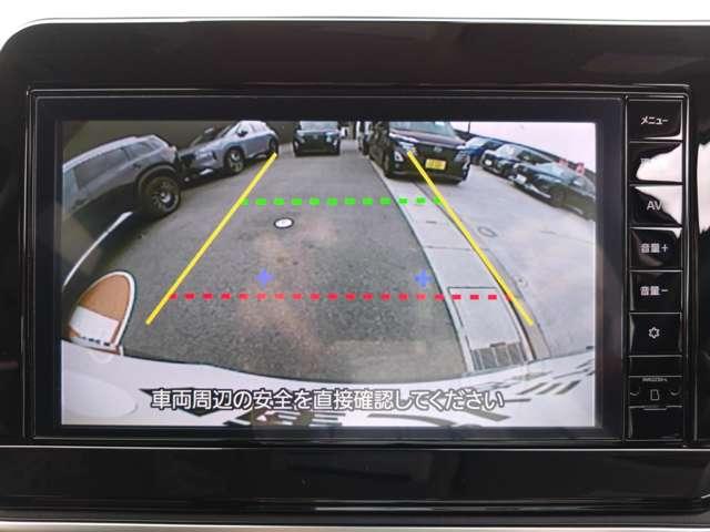 バックモニターで車庫入れや縦列駐車もらくらく、夜間でもはっきり見える高感度カラーカメラで車幅、距離表示機能付きです。