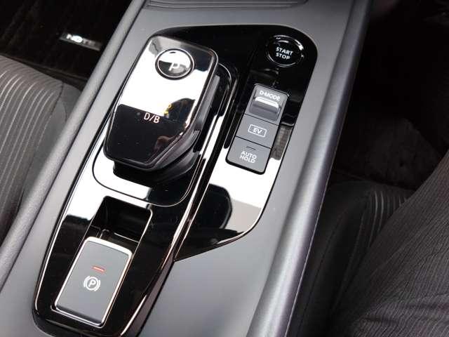 上下二段式のモダンなセンターコンソール、前後の動きだけで操作できる新しい電制シフトレバーと電動パーキングブレーキ。