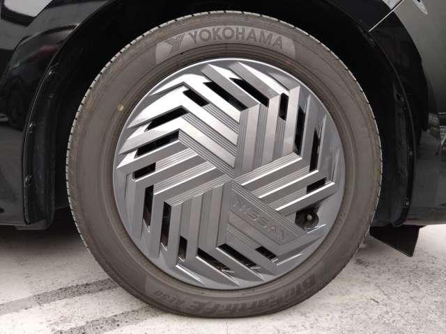 16インチタイヤと純正ホイールカバー。高い走破性と低燃費を兼ね備えたエコタイヤを採用しています。