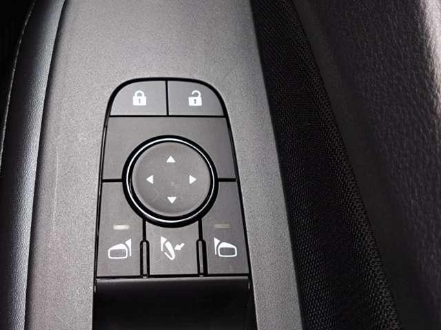 電動格納式ドアミラーです。自動格納機能付きで、接近時アンロック/降車時ロックにも対応しています。