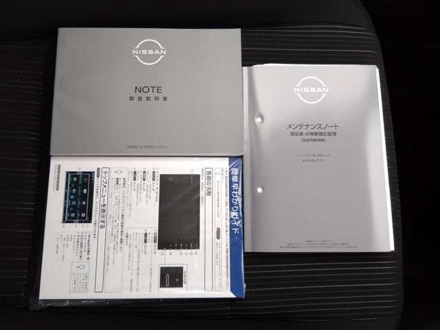 取り扱い説明書、保証書そろっています。おクルマの点検整備や保証内容がきちんと記録されているから安心です。