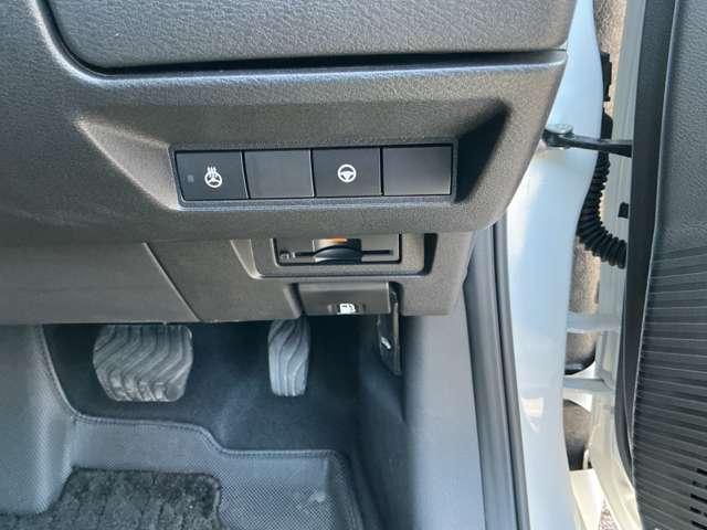 インテリジェントキーのプッシュスタートスイッチです。エンジンの始動はブレーキペダルを踏みながらこのスイッチを押すだけで始動できます