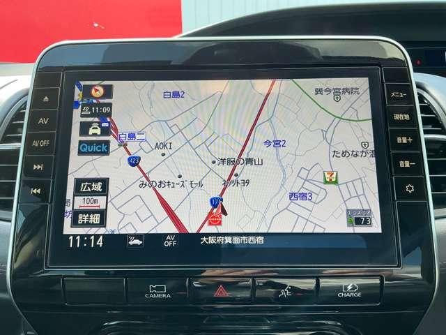 操作性のいい日産純正のナビ、DVDビデオ再生機能付きなので知らない街へのお出かけも楽しみになりますよ。