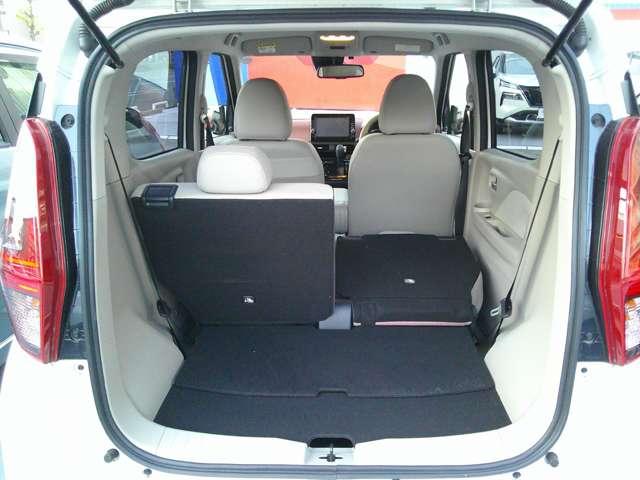 後席シートの両側収納で大きなラゲッジスペースができあがります。