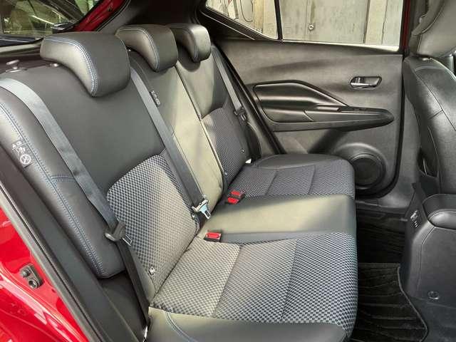 キックスは通常のハイブリット車に比べ、フロントシート足元付近にバッテリーがあるだけ!更にフロントシート背面形状を最適化し、後席ニールームを拡大。大人でもゆったりと座ることができる広さを実現しています