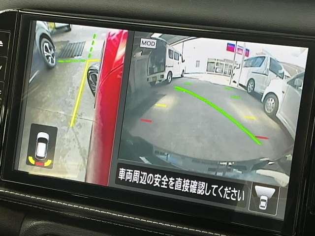 大画面のナビゲーションでクルマを上空から見下ろしているかのように、状況を把握できます。4つのビューを切り替えることで狭い場所でも周囲が映像で確認できます。移動物検知機能も付いて車庫入れなども安心です