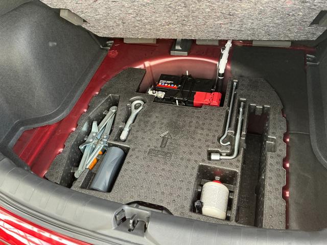 ラゲッジスペースの下にはパンク修理キットなどが入っています!別売りの三角停止版を入れるスペースもございますので、いざという時の設備も綺麗に収納してドライブしていただけますね