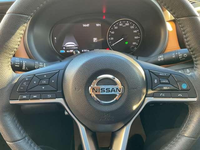 「ステアリングS/W」右【プロパイロット】高速道路で、アクセル、ブレーキ、ステアリングをクルマがアシストいたします。ステアリングS/W左・オーディオのチャンネルやボリュームを手元で操作できます。