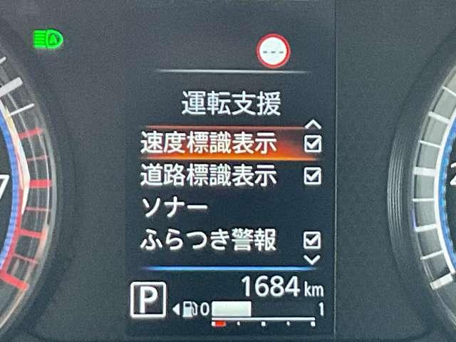 メーターパネル、中央デジタル部分で安全装備の設定や車両設定など確認出来ます。