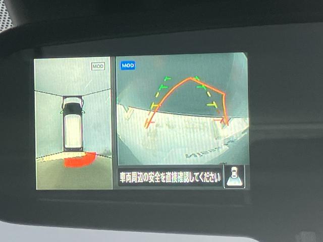 アラウンドビューモニターは4方のカメラで真上から車を見たようにモニターで確認ができる日産の自慢の装備です。前後センサーにより移動物検知、障害物検知をして画面に表示。是非実際の車で体感してみてください。
