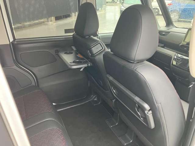 運転席と助手席のシートバックに収納式のトレイ付きドリンクホルダーを装備しています。ドライブの時など便利です。