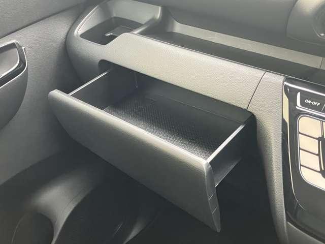 助手席側収納。上下に分かれていてたっぷり収納できますので便利ですよ。