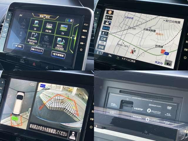 安心の純正ナビです。CD録音・DVD再生・Bluetooth接続対応です。アラウンドビューモニターが映ります。