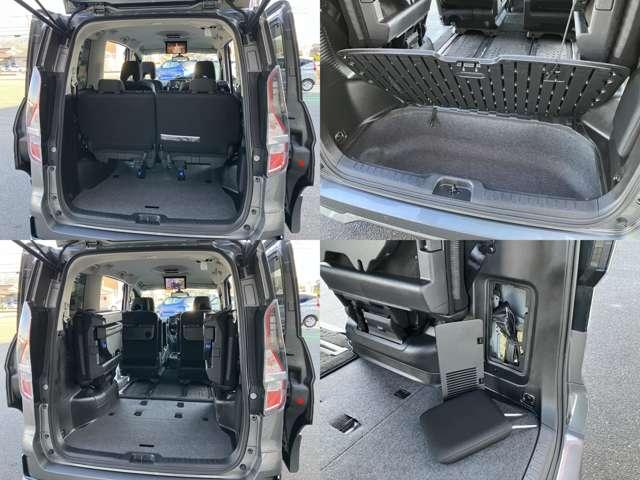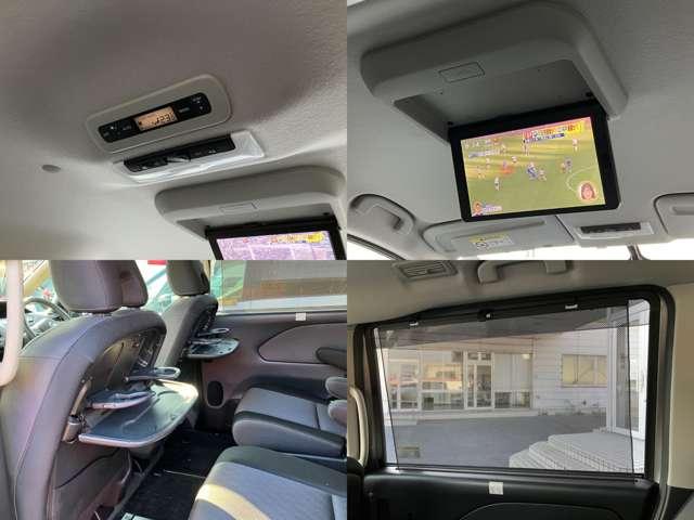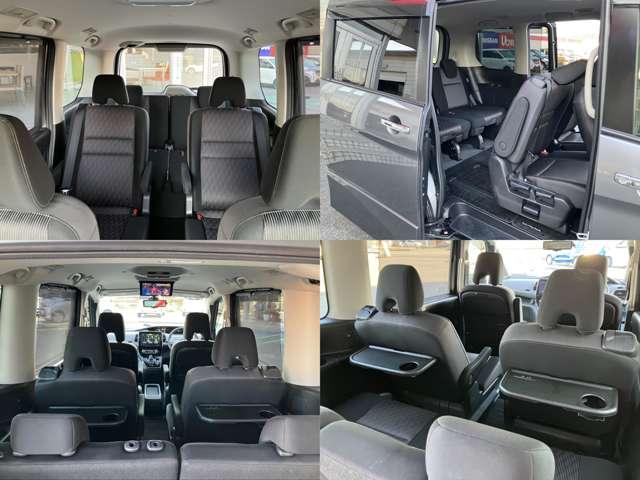 後席モニター付きで後ろの席でも退屈しません。スライドドア内蔵サンシェード2列目・3列目にパーソナルテーブルと後席も快適です。