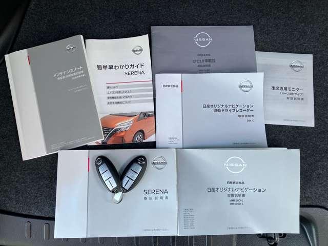 各取り扱い説明書、整備手帳、スマートキー2本つきです。
