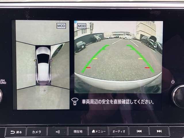 アラウンドビューモニターは4方のカメラで真上から車を見たようにモニターで確認ができる日産の自慢の装備です。是非実際の車で体感してみてください。