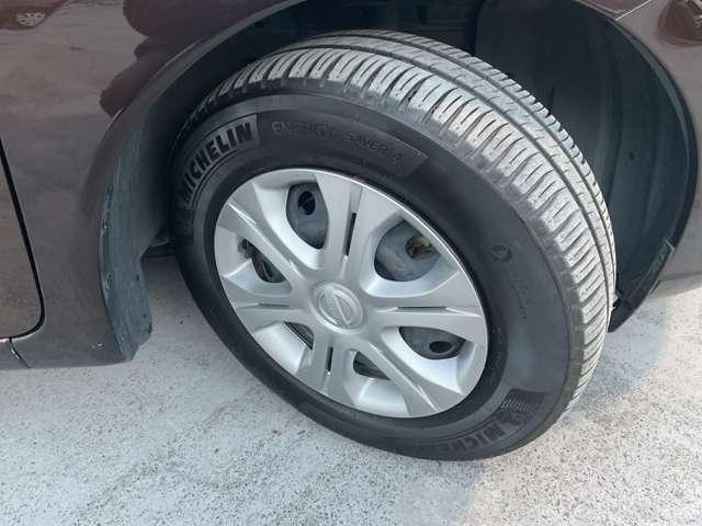 14インチタイヤと純正ホイールカバー。高い走破性と低燃費を兼ね備えたエコタイヤを採用しています