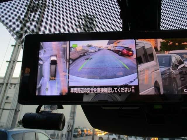 バックミラーに、アラウンドビューモニター搭載。車体を4方向のカメラで「上から見下ろしたような映像」を映します。車庫入れが苦手な方も映像サポートでラクラク駐車できます。