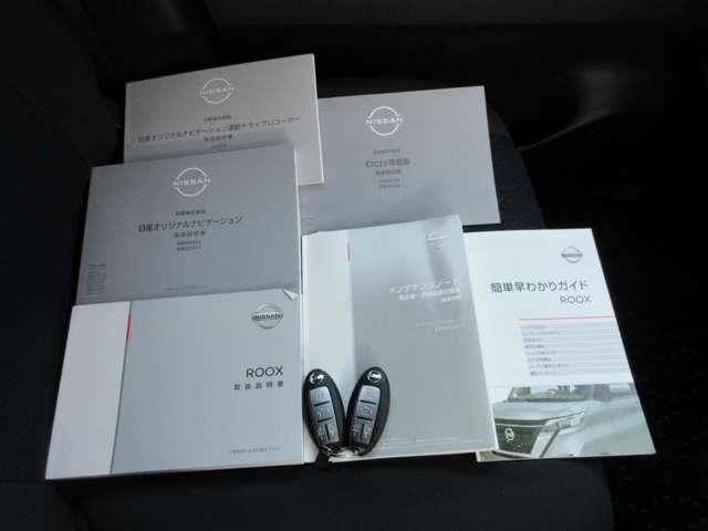 整備手帳やナビゲーションの説明書付きです。盗難防止装置のイモビライザーを装着しているリモコンキー付きなので、バックに入れたままでもドアロックやエンジン始動をしていただくことができます。