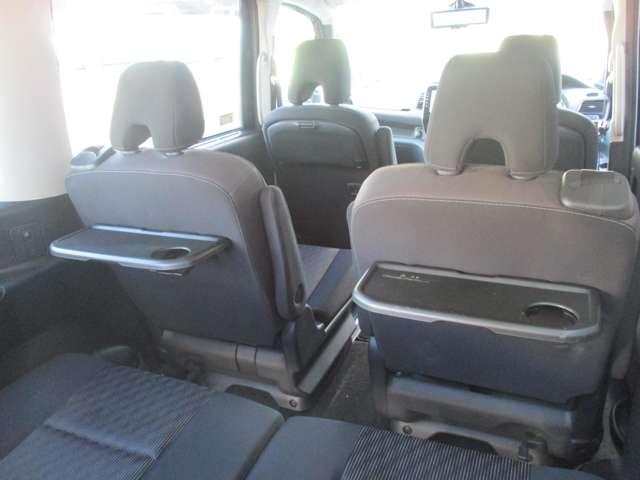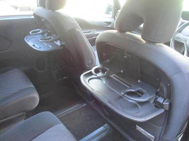 行楽に便利なドリンクホルダーも備え付けた展開式のシートバックテーブル。現地に早めについて車の中でお食事っていうのもなかなか楽しいですよね。
