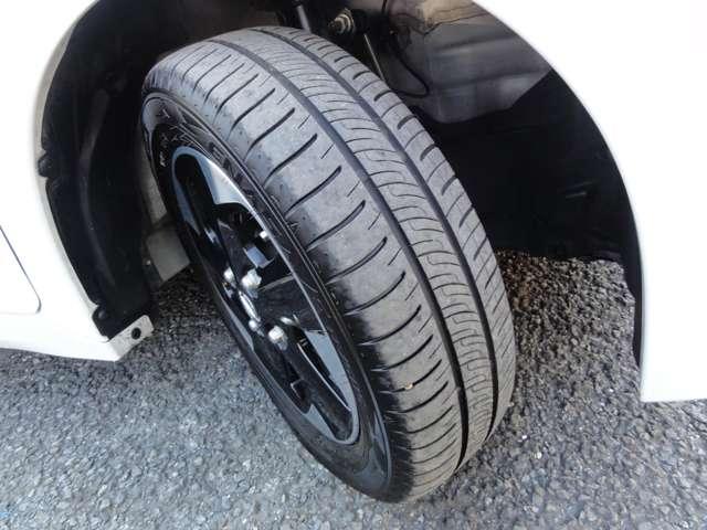 タイヤの溝・ヒビ等の状態やホイールの傷、曲がりも確認します。