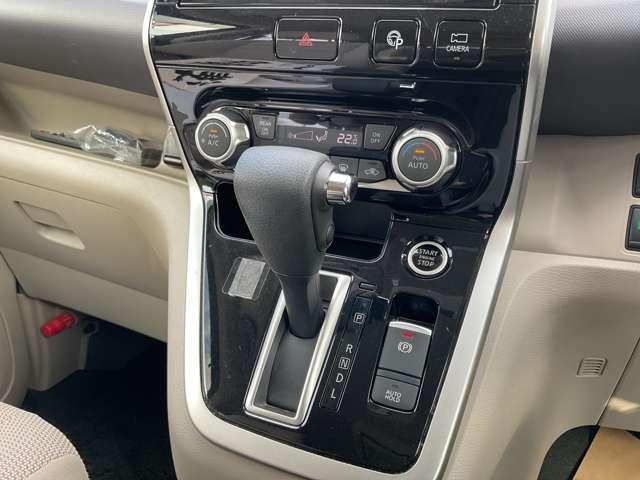 縦配列のシフトレバーです。エアコンはオートエアコンになっていてご自宅のエアコンと同じような感覚でご使用できます。