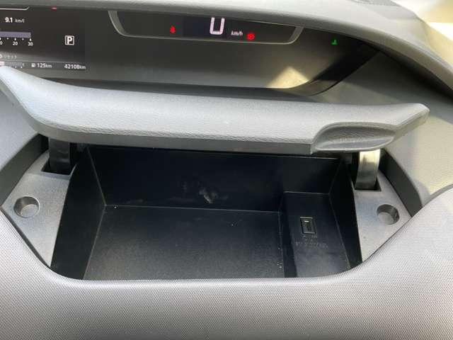 運転席前にある小物入れ、USB端子も装備してます。