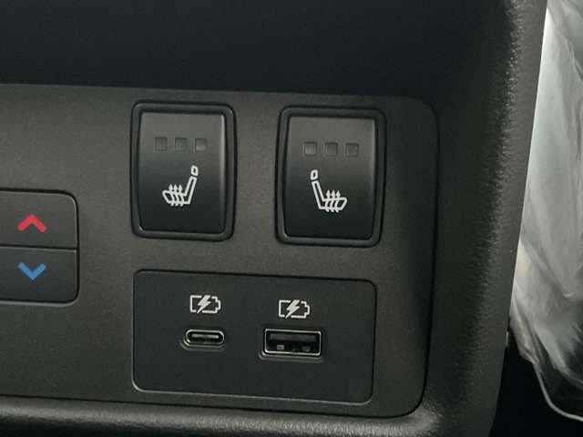 後席用シートヒータースイッチと充電端子付きです。