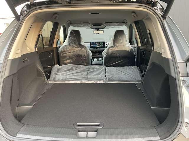 後席を倒すと広々としたラゲッジルームとなり大きい荷物も入るようになります。