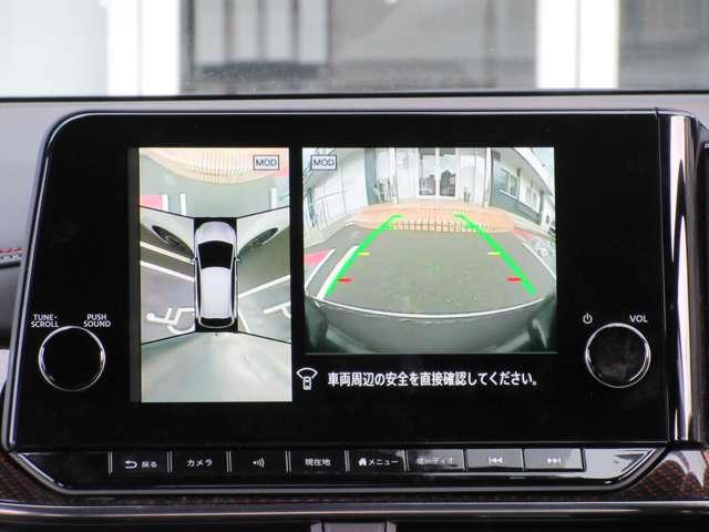 アラウンドビューモニターは4方のカメラで真上から車を見たようにモニターで確認ができる日産の自慢の装備です。是非実際の車で体感してみてください。