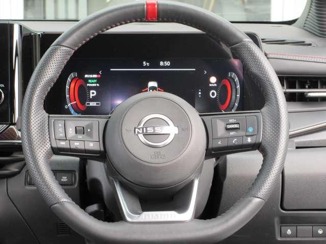 ハンドルの右側にはプロパイロットシステムのスイッチが付いているので、高速道路の運転が楽になりますよ!左側のオーディオ操作のスイッチにて音量調整等をナビを直接触ることなく操作ができます。