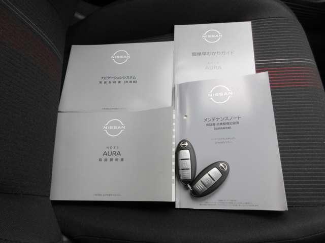 整備手帳やナビゲーションの説明書付きです。盗難防止装置のイモビライザーを装着しているリモコンキー付きなので、バックに入れたままでもドアロックやエンジン始動をしていただくことができます。
