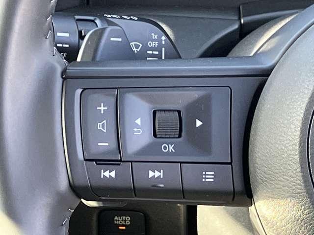 【ステアリングスイッチ】走行中でもハンドルから手を離さずにスピードメーター内のインフォメーションディスプレイの切替、音量調節等、操作できます♪