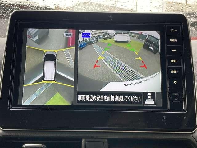 アラウンドビューモニターは4方のカメラで真上から車を見たようにモニターで確認ができる日産の自慢の装備です。是非実際の車で体感してみてください。