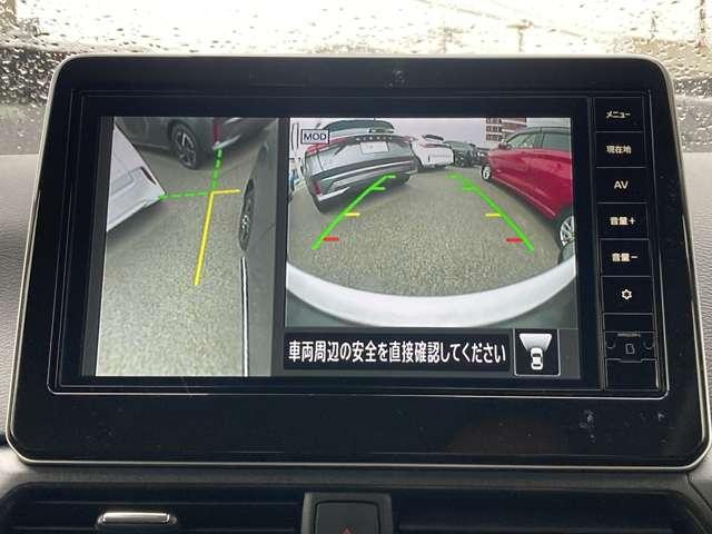 ルームミラーにもアラウンドビューモニターの映像が出ますのでどちらか見やすい方をご使用いただけます。