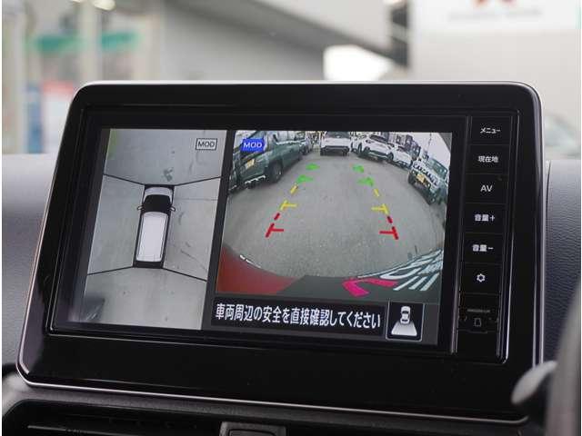 【全方位カメラ】クルマを真上から見たような俯瞰(ふかん)映像や助手席側のサイド映像など、視点を切り替えて表示。さまざまなアングルで駐車をサポートします。