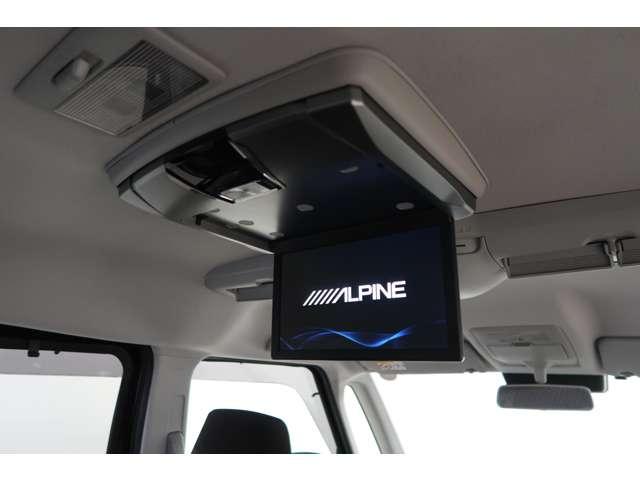 後席には吊り下げ式のモニターを装備