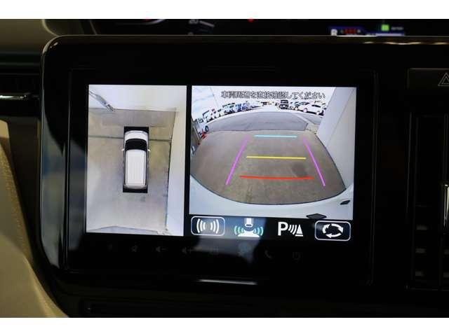 マルチアラウンドモニター(全周囲カメラ)装備☆真上から見下ろしているような映像で駐車をサポートします♪ステアリングガイドライン表示機能付き!