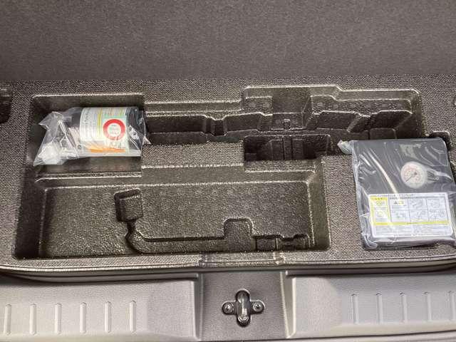 ラゲッジルームの下にパンク修理キットとジャッキアップ用の工具が積んであります。
